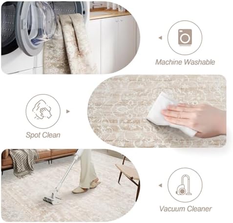 **Product Title:** 5×7 Area Rugs for Living Room – Beige Floral Washable Rugs for Dining Room, Bedroom, Home Office – Vintage Non-Slip Thin Rug